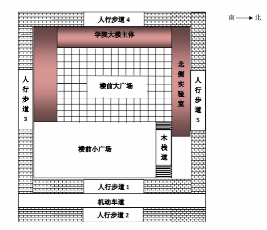 学院负责楼前的庭院、人行步道及方砖通道。综合考虑各除雪单位的师生数量、教师年龄状况等影响因素,将能动学院除雪责任区划分如下: