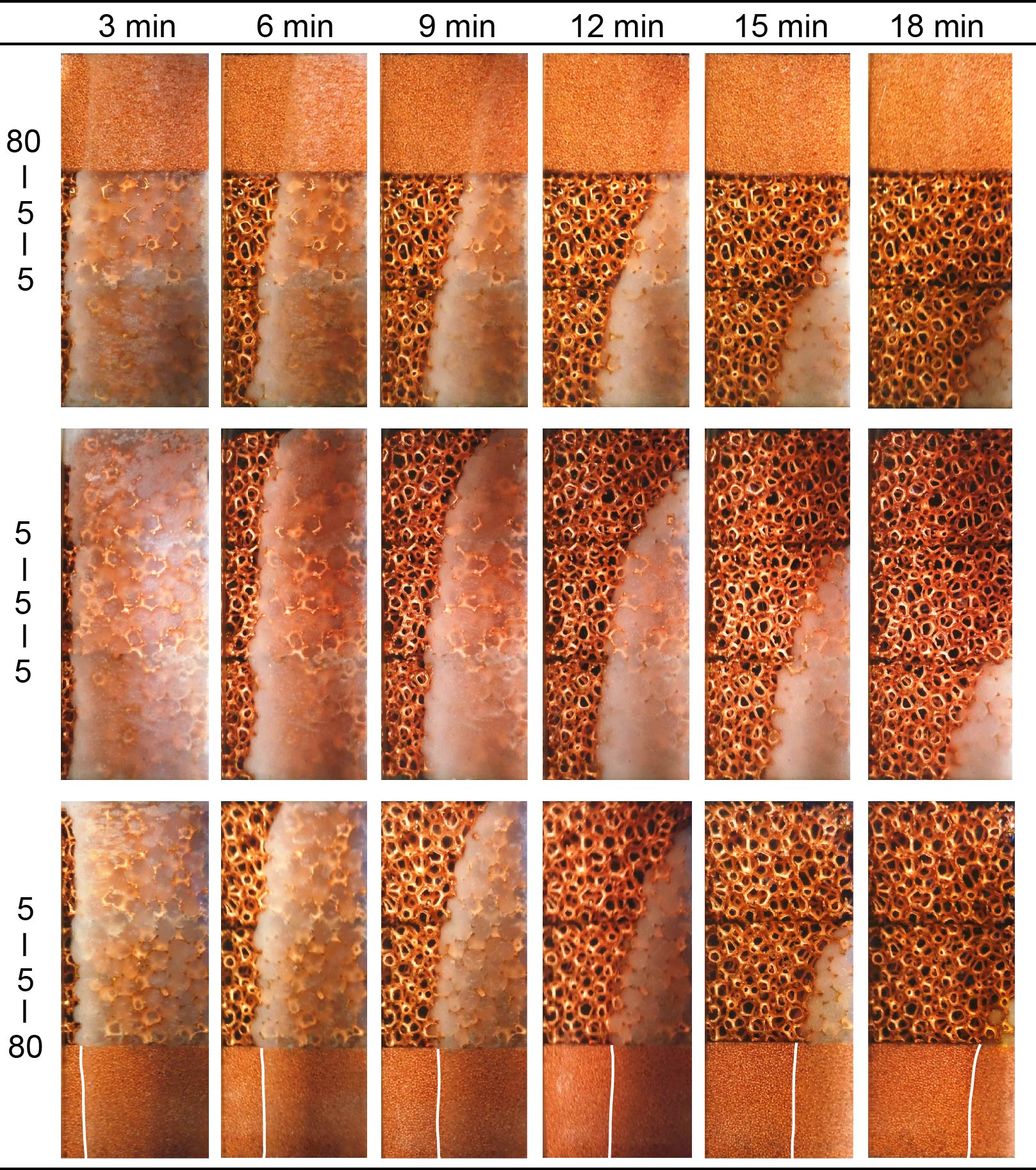 图3. 梯度孔隙度与均匀孔隙度泡沫结构融化表现
