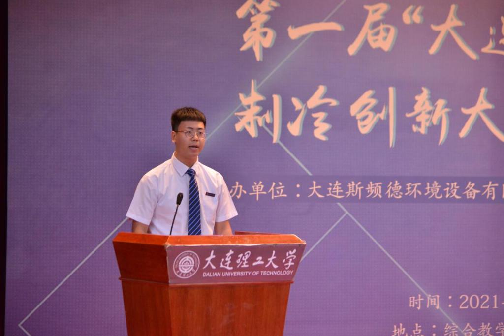 制冷及低温工程专业学生代表张博同学发言,向大连斯频德环境设备有限公司和能动学院设立竞赛表达最衷心的感谢,所有参赛队员将会认真筹备,积极比赛。