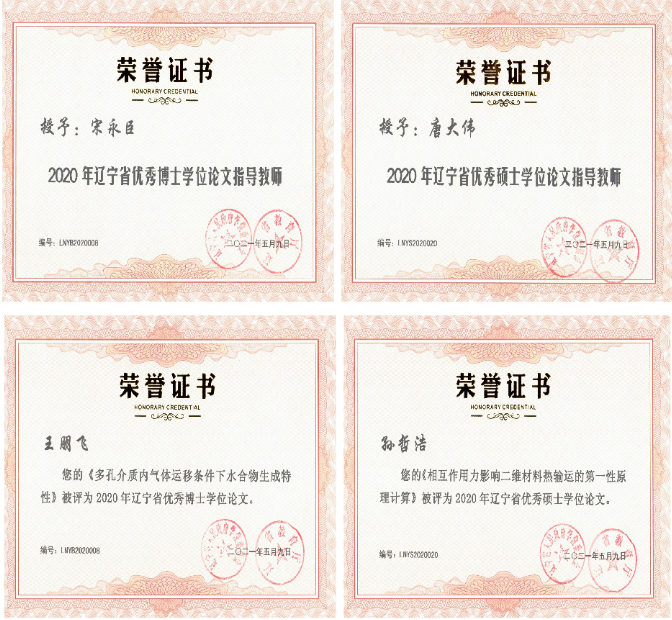 由宋永臣教授指导的博士生王朋飞、唐大伟教授指导的硕士生孙哲浩,分别获得省优秀博士学位论文、优秀硕士学位论文,这是我院连续第七年获得该项荣誉。