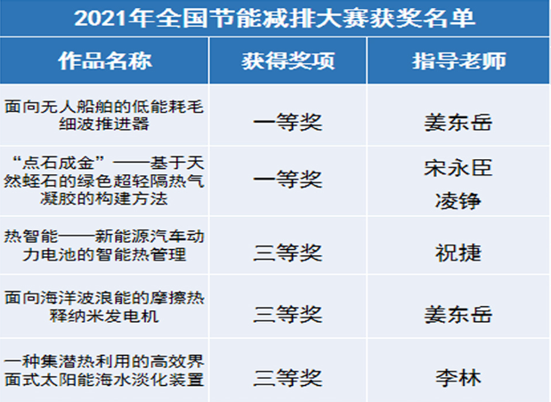 第十四届全国大学生节能减排社会实践与科技竞赛决赛中,学院获一等奖两项、三等奖三项、优秀组织奖。