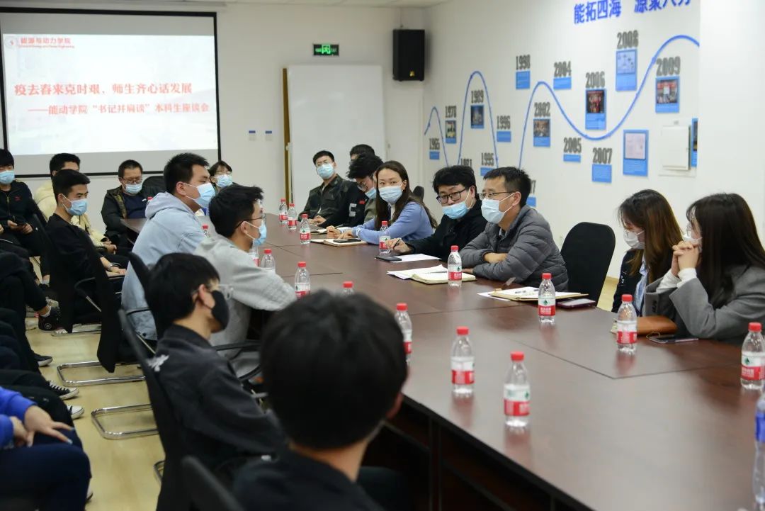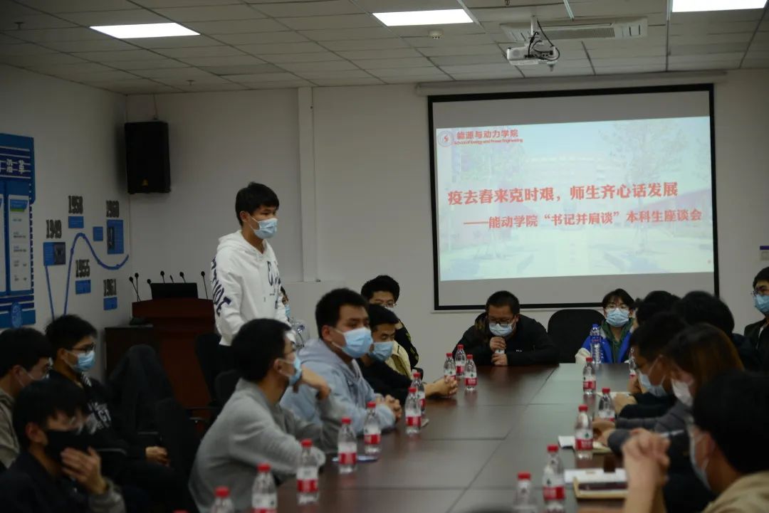 “疫去春来克时艰,师生齐心话发展”,2022年4月7日下午,能动学院“我与书记并肩谈”本科生座谈会在能动楼225顺利召开。学院党委书记杨明军老师,副书记、副院长巴雪冰老师和各年级辅导员老师,各年级学生代表参加了本次活动。