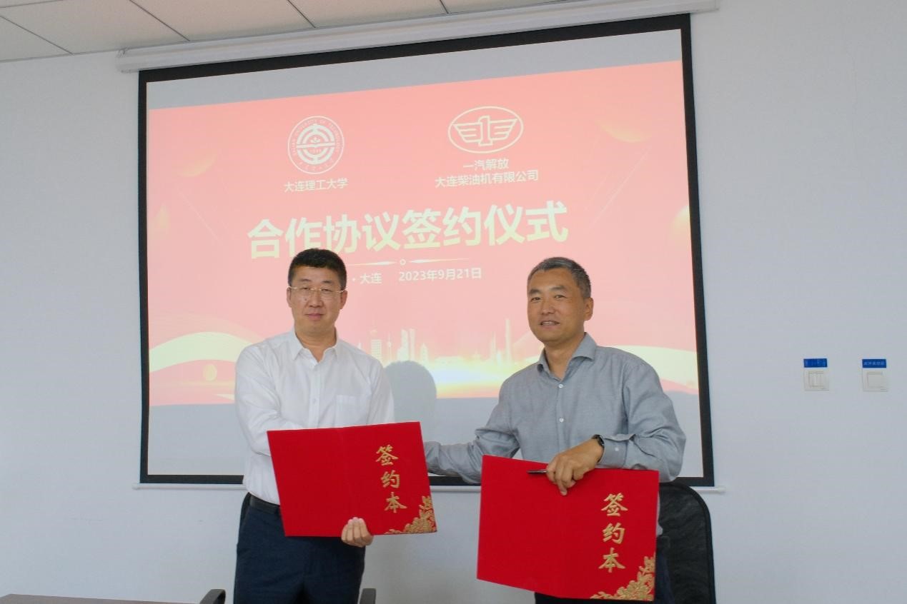 随后,大连柴油机有限公司刘鹏副书记与能源与动力学院贾明教授正式签署合作协议,并合影留念这一重要时刻。这一合作协议的签署标志着双方将携手共进,共同推动科技创新,为大连市的科技事业和经济发展贡献更多力量。