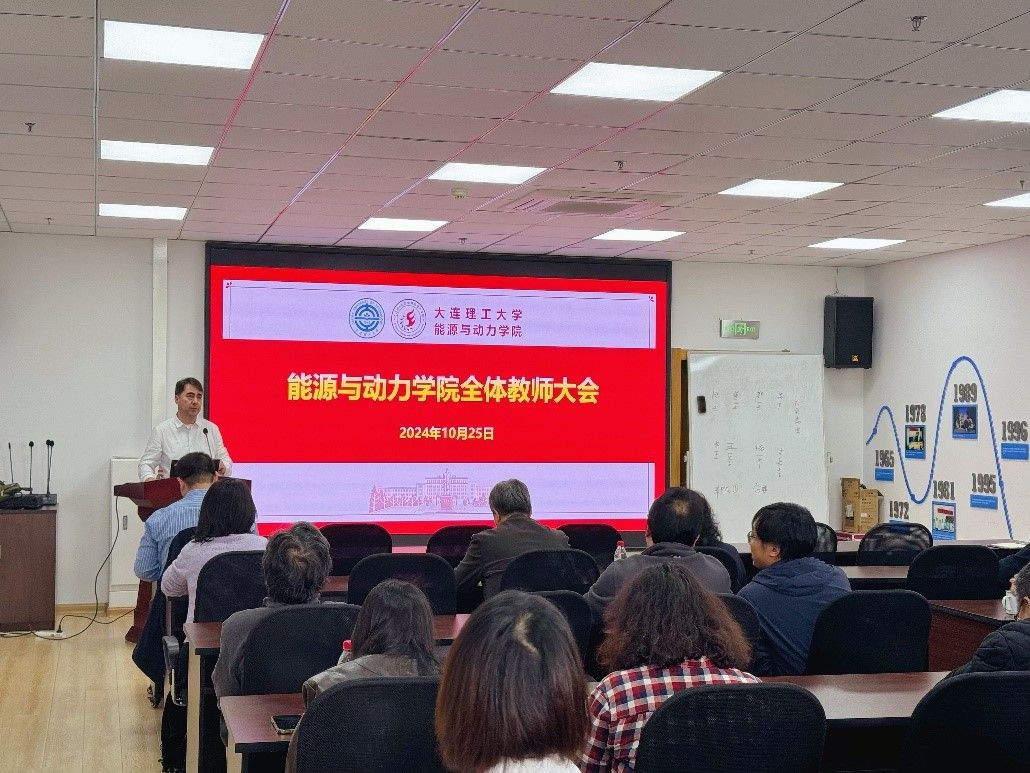 10月25日下午,为进一步凝聚全院师生卓越发展共识,能源与动力学院在知行楼225召开全体教师大会,开展科研经费使用培训、关爱职工健康等系列活动。会议由学院党委书记东明主持,学院全体教师参加。