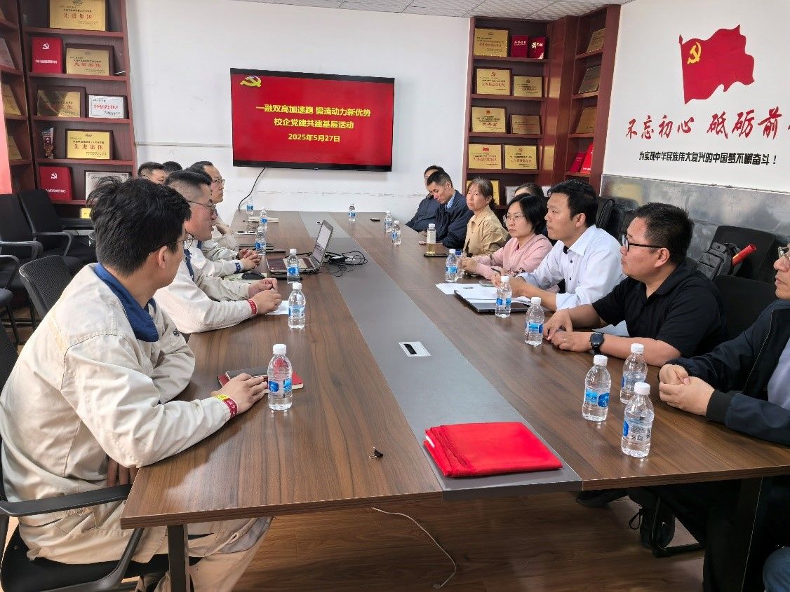 会上,双方就“党建+”带动新优势进行了深入交流。那建治同志对支部概况、人员构成、“党建+”活动开展等情况进行了介绍,着重展示了车间在大型集装箱船舶绿色低碳、节能降耗等方面完成的业绩情况,为校企党建共建提供了实践经验和合作方向。董鹏博同志介绍了党支部的基本情况,并从柴油机快速混合燃烧系统、甲醇/氨燃料直喷扩散燃烧、点火室射流引燃技术等方面,展示了内燃机研究所的科研方向和创新成果。