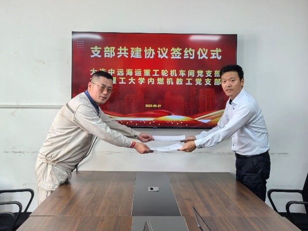轮机车间党支部书记那建治同志与内燃机教工党支部书记董鹏博同志,作为双方党支部代表共同签署了《基层党组织共建协议书》。双方明确将通过学习研讨、联系互访、共同开展主题党日活动等方式,携手推进建设学习创新型党组织。将深入学习贯彻习近平总书记在全国两会期间和在辽宁考察期间的重要讲话精神,以党建活动为有力抓手,紧密贴合行业发展趋势和国家战略需求,结合各自的优势资源,在重点、难点项目方面开展技术研发交流,互相促进,共同进步。
