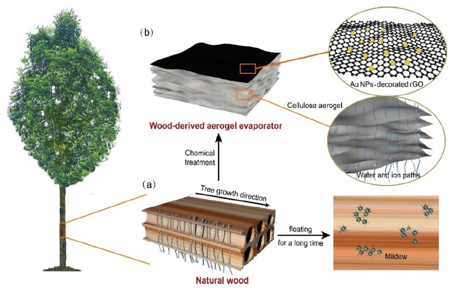 图3.基于木质气凝胶的太阳能界面蒸发体结构示意图