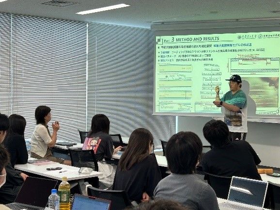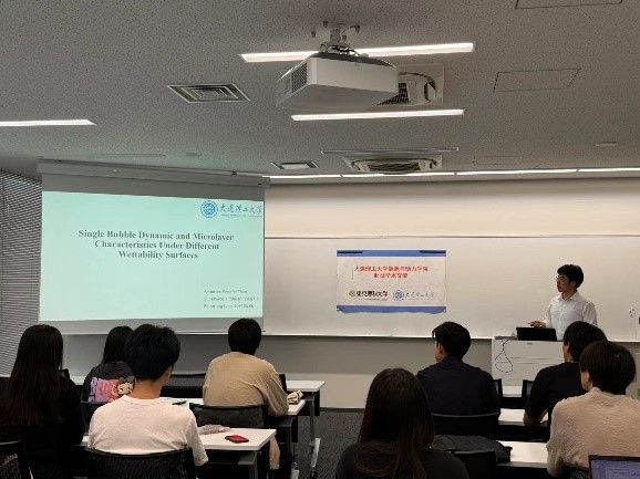 在交流合作期间,除了参观实验室,上野一郎教授还邀请贺缨教授在研究生课程中为学生们做主题为“Heat And Mass Transport Phenomena through Interface”的学术报告。主要介绍两相流生物力学实验室的研究方向之一沸腾模拟。在讨论环节,学生们就气泡形成发展机理、模拟实现手段、表面材料特性等方面提出了许多问题,互动非常热烈。之后就进入此次交流的主要环节双边研讨会。双方都派出了精兵强将,各自拿出了看家本领。赴日交流团队的报告题目包括0D/1D/3D血流动力学模拟、硅胶血管模型制作与医学应用研究、池沸腾单气泡饱和沸腾实验及分析等。上野团队组的报告有高过冷度下气泡微细化沸腾实验及特性分析、粘性流体在交错编织的纤维中的流动模拟等。上野教授组的Inagawai同学虽只是硕士1年级,但已经取得了丰满的研究成果。当被问到计算时如何处理边界条件时,他直接调出准备好的PPT侃侃而谈,两位老师都夸赞其优秀的表现。