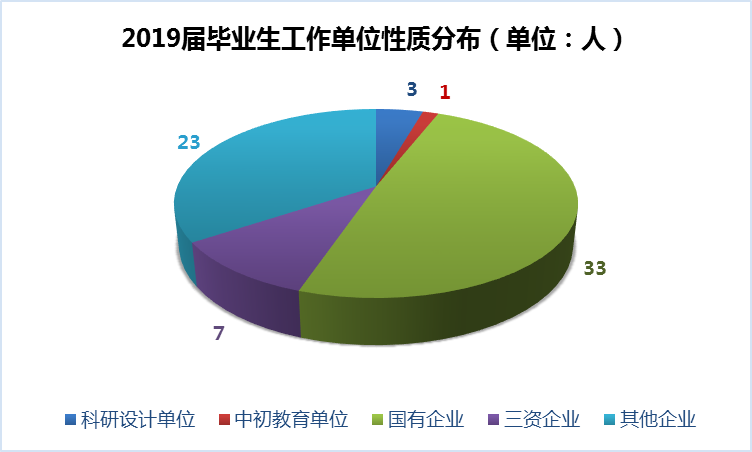 毕业生签约国有及国有控股企业的比例为49.25%,民营企业34.33%,三资企业10.45%,科研设计单位等各类事业单位就业的比例为4.48%。